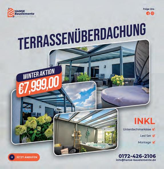 Janssen Reisen Wittmund GmbH & Co. KG Alter Postweg 29 · 26409 Wittmund Alle Preise p.P. im DZ. Ausführliche Reisebeschreibungen finden Sie in unserem aktuellen Winterkatalog oder unter www.janssen-reisen.de Beratung und Buchung im Reisebüro oder unter www.janssen-reisen.de Ihre Urlaubs-Hotline: 04462/88840 Reisen wie auf Wolken. SEHR GUT 2021 QualityBus 002_Fahrten-Weihnachten-Silvester_94x90mm_201479.indd 1 28.10.2022 12:52:32 26. OktOber 2023 ÖVb ArenA bremen Tickets: 01806-570 000 (20 Ct./Min., Mobilfunk max. 0,60 Ct.)