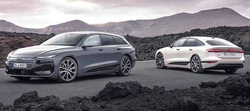 Wollen Maßstäbe in ihrer Klasse setzen: Der neue Audi e-tron Avant (l.) und sein Sportback-Pendant. Als erstes Audi-Modell kommt der A6 e-tronmit illuminierten Ringen am Heck.