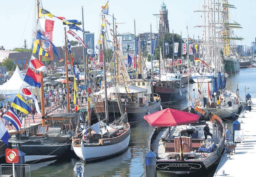 Dazu gehört auch die „Schulschiff Deutschland“ als letztes deutsches DreimastVollschiff mit Dauerliegeplatz im Neuen Hafen – gebaut 1927 in Bremerhaven. Während der 121 Jahre alte Finkenwerder Kutter „Astarte“ der Schiffergilde Bremerhaven für deutschen Hochsee-Holzschiffbau steht, bringen der 52 Meter lange Dreimaster „Gulden Leeuw“ und der Kogge-Nachbau aus dem niederländischen Kampen weiteres internationales Flair zu den Maritimen Tagen. Dazu kommen viele