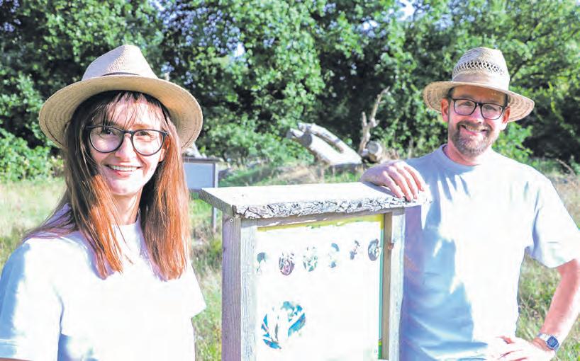 Bea und Hajo Kaemena erklärten auf dem kleinen Lehrpfad ihrer Wildwiese, weshalb welche Pflanzen und Bereiche für die unterschiedlichen bedrohten Insekten besonders wichtig sind Foto: Bollmann