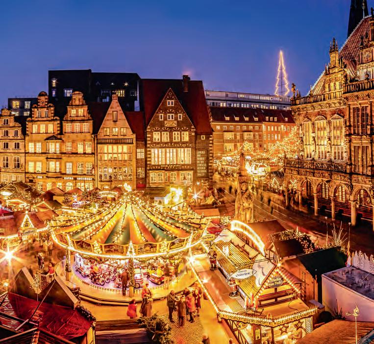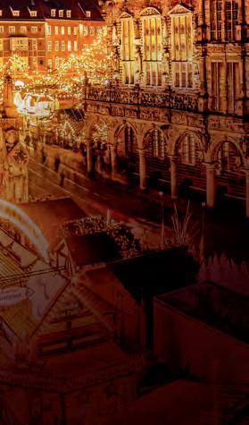 Die Aufbauarbeiten sind beinahe abgeschlossen und in wenigen Tagen geht es los: Der Bremer Weihnachtsmarkt lädt auch in diesem Jahr zu einem stimmungsvollen Bummel rund um Rathaus, Roland, Schütting und Stadtmusikanten ein. Zwischen historischen Fassaden entsteht ein winterliches Dorf aus Buden, Karussells und liebevoll dekorierten Häuschen. Rund um den Marktplatz duftet es nach Gebäck, Bienenwachs und Glühwein, während an rund 145 Ständen kulinarische Spezialitäten, Kunsthandwerk, Geschenkideen sowie Accessoires angeboten werden. Viele Bremerinnen und Bremer nutzen den Markt, um in der Adventszeit den Feierabend einzuläuten oder gemeinsam über den festlich beleuchteten Platz zu schlendern.
