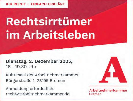 Anzeigenleiter: Johannes Knees Kleinanzeigen: Tel. 690 55 400, Fax 690 55 500 Gestaltete Anzeigen: Tel. 690 55 102 info@weserreport.de Zurzeit gelten Anzeigenpreisliste Nr. 52 vom 1. Januar 2025 und unsere darin abgedruckten AGB. Falls Sie dieses Produkt nicht mehr erhalten möchten, bitten wir Sie, einen Werbeverbotsaufkleber mit dem Zusatzhinweis „Keine kostenlosen Zeitungen“ an Ihrem Briefkasten anzubringen. Weitere Informationen finden Sie auf dem Verbraucherportal www.werbung-im-briefkasten.de Internet: www.weserreport.de