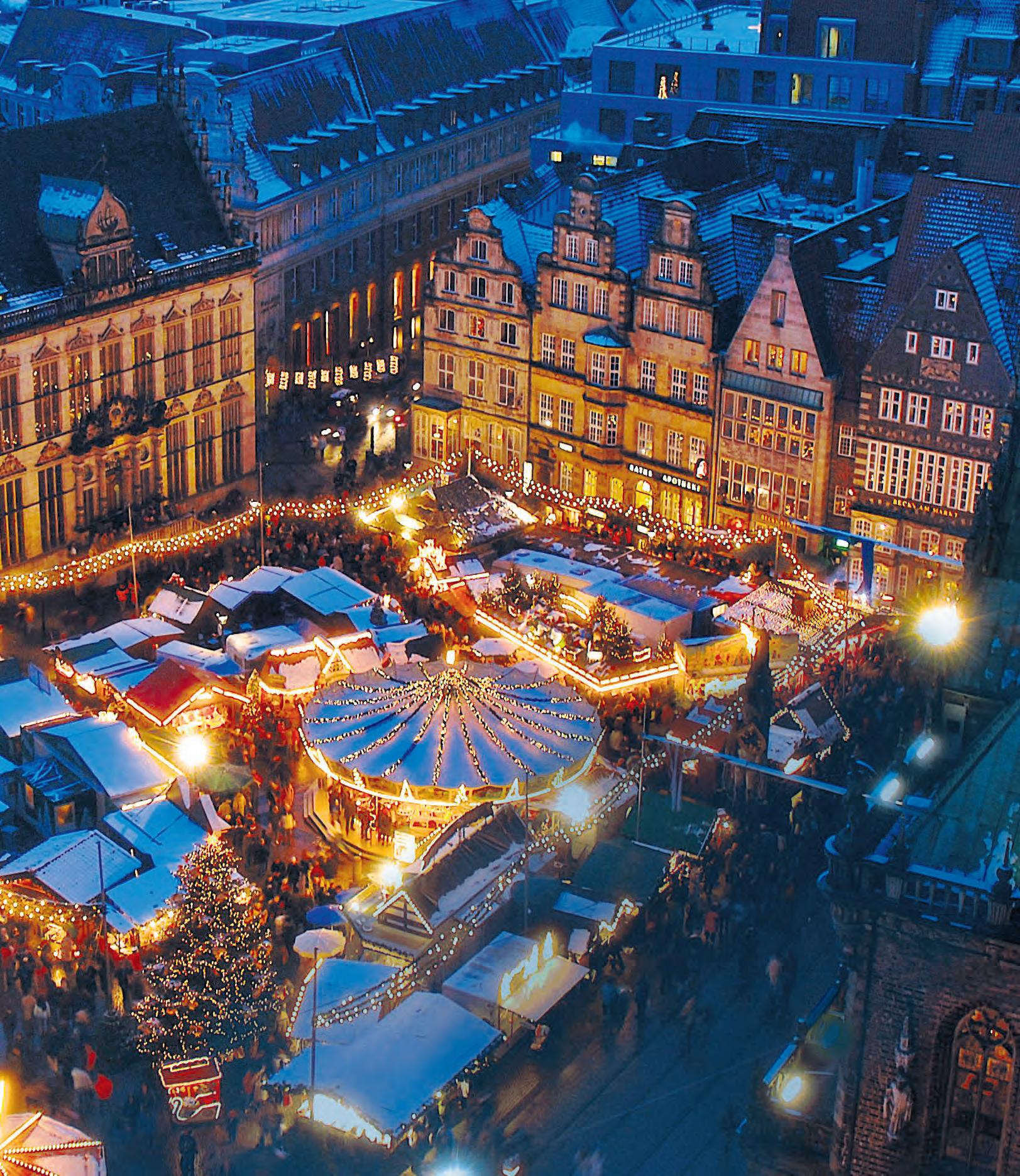 den Donnerstagen 27. November, 4. Dezember, 11. Dezember und 18. Dezember ziehen zwischen 16 und 18 Uhr wechselnde Charaktere über den Markt. Musikalisch wird es an den Adventssamstagen, wenn um 18 Uhr vom Rathausbalkon die Turmbläser erklingen und mit bekannten Weihnachtsliedern für festliche Stimmung sorgen. Für die Anreise empfehlen sich die umliegenden Parkhäuser, die rund um die Uhr geöffnet sind. Entspannter geht es mit Bus, Bahn und Straßenbahn. Samstags zwischen 11 und 18 Uhr verkehrt zudem die kostenlose Ringbahn der BSAG. Auch Regionalbusse sowie Züge im VBN-Gebiet bringen Gäste bis in die späten Abendstunden in die City – ideal für