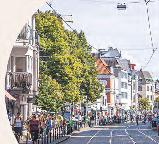 Stadt so wichtig waren, stehen noch immer – und sollen gemeinsam ein neues Quartier formen. An allen Ecken wird im Balgequartier gebaut, egal ob außen oder hinter den Fassaden tut sich etwas. Zwischen Obernund Martinistraße sollen vier große Bauprojekte das Aussehen des Viertels prägen. Den Aufschlag machte bereits 2020 das Johan-Jacobs-Haus an der Obernstraße. „Wir bieten hier