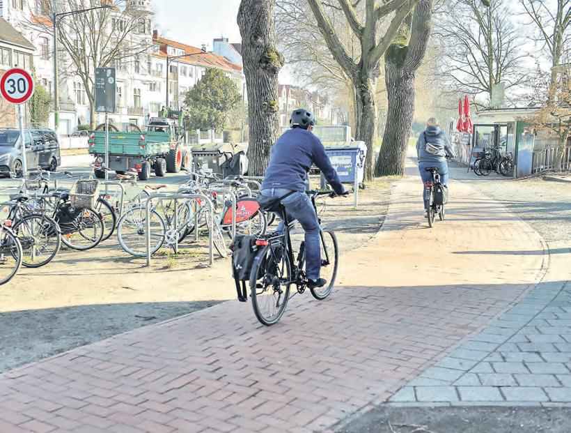 erschließt. Für die Bevölkerung ergeben sich so Wege von bis zu zwei Kilometern. Mehr Buslinien, unterstützt durch den Einsatz von Fähren, würden die Situation kurzfristig entschärfen, so Brodbeck. Generell fordert der VCD das Mobilitätsressort auf, deutlich schneller zu planen. Die Straßenbahnlinie in die Überseestadt und die dafür notwendige Brücke sollen nicht vor Mitte der 2030er Jahre realisiert werden, erklärt Aygün Kilincsoy. Die Europahafenbrücke würde dementsprechend in das Jahrzehnt der Bremer Brücken fallen. Gleichzeitig soll der Neubau der Bürgermeister-SmidtBrücke stattfinden. Auch die Fahrradbrücken, die sogenannten Wesersprünge, sollen zumindest ihren Baubeginn in den 2030er Jahren feiern. Wann die Straßenbahn in der Überseestadt fahren wird, bleibt unklar.