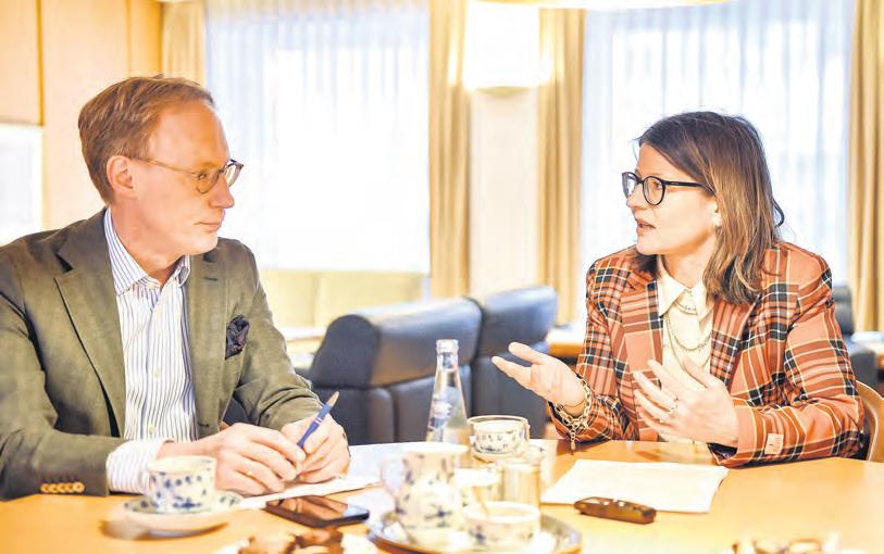 In vielen Punkten einig: Cornelius Neumann-Redlin (l.) und Gesa Wessolowski-Müller beim Gedankenaustausch über eine gerechtere Verteilung von Care-Arbeit. Foto: Schlie