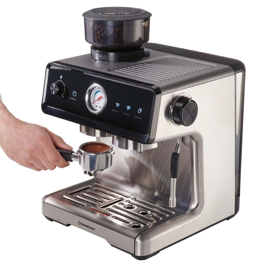 Typ „ SMCC 1100 A1“. Küchenmaschine mit Kochfunktion. Intuitives Touch-Bedienelement mit LC-Display. Automatikprogramme für Kneten, Anbraten und Dampfgaren (Dampfgaraufsatz separat erhältlich). Integrierte Küchenwaage für direktes Wiegen im Topf (bis 3 kg). Mit Linkslauf zum Kneten und Rühren – Lebensmittel werden nicht zerkleinert. 10-stufige Geschwindigkeitseinstellung und Turbofunktion. Temperatur von 37–130 °C. Rostfreier 2-l-Edelstahl-Mixbehälter (max. Füllmenge 1,5 l). Max. Leistungsaufnahme (gesamt 1.100 W): Kochen 1.050 W, Mixen 500 W. Komplettes Zubehör spülmaschinengeeignet. Je Stück
