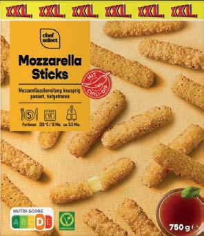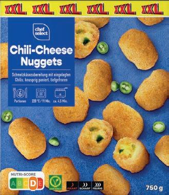 Aus dem Brustfilet geschnitten, paniert. Je 500 g; 1 kg = 7.98 Chef Select Chili-Cheese-Nuggets/ Mozzarella-Sticks XXL Je