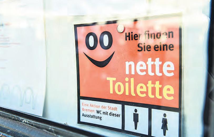 ist beispielsweise der Bremer Flughafen. Auch der Bremer Ratskeller nimmt an der Netten Toilette teil: „Wir wollen den Tourismus und die Innenstadt beleben. Und da es sonst in der Innenstadt wenig Angebote für öffentliche Toiletten gibt, helfen wir gerne aus“, sagt Geschäftsführer Arnd Feye. Das Angebot wird gut angenommen und das Feedback sei durchweg positiv. Feye betont: „Die Menschen sind dankbar, dass sie ohne Verzehrzwang unsere WC-Anlagen nutzen können. Schließlich ist es dann oft dringend.“