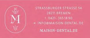 Bettina Meister Das BLV: Regina Drieling, Antje Spitzner Büro Osterholz-Scharmbeck : Jasmin Johannsen, Marius Roskamp Fotos: Klaus Werner Schlie Anzeigenleiter: Johannes Knees Kleinanzeigen: Tel. 690 55 400, Fax 690 55 500 Gestaltete Anzeigen: Tel. 690 55 102 info@weserreport.de Zurzeit gelten Anzeigenpreisliste Nr. 50 vom 29. Januar 2023 und unsere darin abgedruckten AGB. Falls Sie dieses Produkt nicht