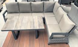 899,- ROPE GARTENMÖBELSET bestehend aus 4 Rope-Verstellsesseln mit Gasdruckfeder inkl. 4 Sunbrella Sitzkissen und 1 Aluminiumtisch 220 x 100 cm mit Keramikplatten