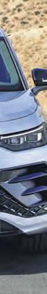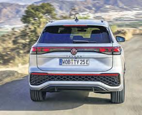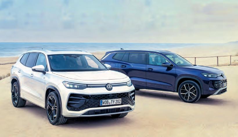 Jetzt kommt der neue Tayron: Der SUV-Allrounder, der optional über sieben Sitzplätze verfügt, steht ab Mitte März bei den Händlern. Der Neuzugang ist neben Golf, Tiguan und Touran das vierte Modell, das in Wolfsburg vom Band läuft. Das rund 4,80 Meter lange Modell positioniert sich zwischen dem kleineren Tiguan (Mittelklasse) und dem größeren Touareg (Oberklasse). Das neue SUV soll an den Erfolg seines Vorgängers Tiguan Allspace anknüpfen und einen wichtigen Beitrag zur Beschäftigungssicherung leisten, heißt es aus VW-Konzernreihen. In China bereits auf dem Markt wird er auch in Europa viele Käufer finden, ist man sich in Wolfsburg sicher. Mit kraftvollem Design außen und Premium-Feeling im Innern möchte der Neue punkten. Auffällig ist der SUV durch sein klares, markantes Design. In der Frontpartie sorgen LED-Scheinwerfer und das serienmäßig illuminierte VWZeichen für eine unverwechselbare Lichtsignatur in die Nacht. Gleiches gilt für das Heck mit seiner durchgehenden LED-Querspange und dem auch hier illuminiertem VW-Zeichen.