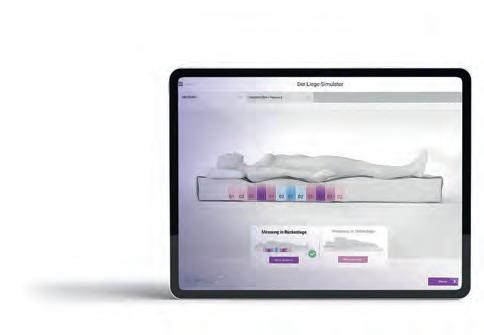 Dank Liege-Simulatorzur 100% personalisierten Matratze, abgestimmt aufdenKörper, die Schlafposition und etwaige Beschwerden. AuchalsPartnermatratze erhältlich.