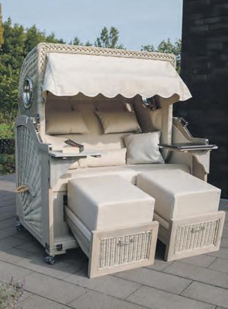 Neben unserer großen Auswahl an hochwertigen Strandkörben präsentieren wir erstmals auch exklusive Gartenmöbel für stilvolles Entspannen im Freien.