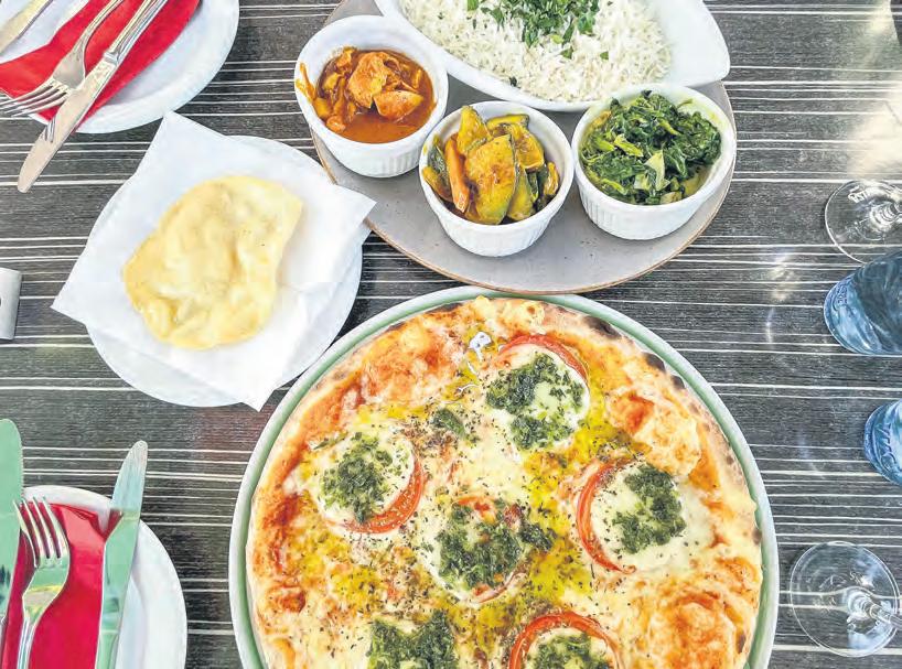 der Karte für 12,90 Euro. So auch unsere Caprese, die als stattliches Gericht mit einem Durchmesser von rund 30 Zentimetern auf den Tisch kommt (ja, wir haben tatsächlich immer ein Maßband dabei). Der knusprige Teig ist belegt mit einer fruchtigen Tomatensauce, aromatischen frischen Tomatenscheiben, mildem, zerlaufenem Büffelmozzarella und etwas Pesto – lecker. Generös beträufelt ist die Pizza zudem mit hochwertigem Olivenöl. Das hätte für uns auch etwas weniger sein dürfen, ist geschmacklich aber natürlich das i-Tüpfelchen. Da sich das Restaurant auf eine exotische Mischung aus italienischer und Sri-lankischer Küche spezialisiert hat, wählen wir als zweites Gericht den Sri