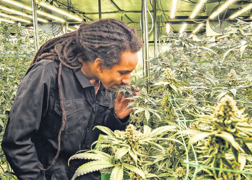 Drei weitere Anträge für die Zulassung eines Anbauvereins im Land Bremen werden derzeit von der Behörde der Senatorin für Gesundheit geprüft, erklärt Sprecherin Kristin Viezens. Auch nach einer Zulassung bleiben die Cannabis Social Clubs unter Beobachtung. „Gerade zu Beginn liegt der Schwerpunkt dabei auf der Überprüfung der Sicherheitsmaßnahmen“, so Viezens. Die Räumlichkeiten müssen einbruchsicher sein und dürfen von außen nicht als Anbauverein erkennbar sein. Auch das Cannabis selbst wird kontrolliert. „Es wird untersucht, ob der THC- und CBDGehalt mit den Angaben auf der Abgabeverpackung übereinstimmt“, erklärt Viezens. Maximal 50 Gramm dürfen pro Mitglied im Monat ausgegeben werden. Dieser Rahmen wird bislang aber nicht ausgeschöpft: „Nach unserer Erfahrung in den ersten Wochen der Abgabe kann man im Durchschnitt eher von 20 bis 25 Gramm pro Mitglied im Monat ausgehen“, berichtet Pascal Mely vom Verein Hanse High. Der Verein baut verschiedene Sorten mit unter-