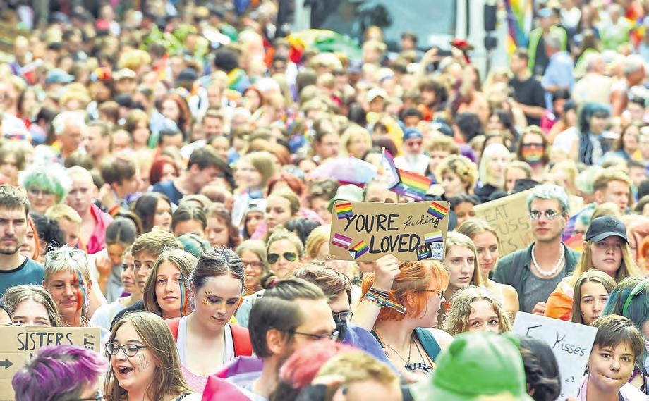Bis zu 25.000 Teilnehmerinnen und Teilnehmer am Christopher Street Day erwarten die Veranstalter am heutigen Samstag auf den Bremer Straßen. Der Fest-, Gedenk- und Demonstrationszug, unter dem Motto „Pride must go on! Gemeinsam. Laut. Für Alle.“ startet um 12 Uhr auf dem Altenwall und zieht über den Bahnhofsplatz zum Goetheplatz. Bis Mitternacht gibt es auf dem Vorplatz des Theaters ein Programm aus Redebeiträgen, Musik und vielem mehr. Die Straßenbahnlinien 2 und 3 der BSAG werden deshalb von 8.30 Uhr bis zum morgigen Sonntag um 3 Uhr umgeleitet und verkehren über den Hauptbahnhof. Die Haltestellen Theater am Goetheplatz und Ulrichsplatz entfallen. pb / Foto: WR-Archiv