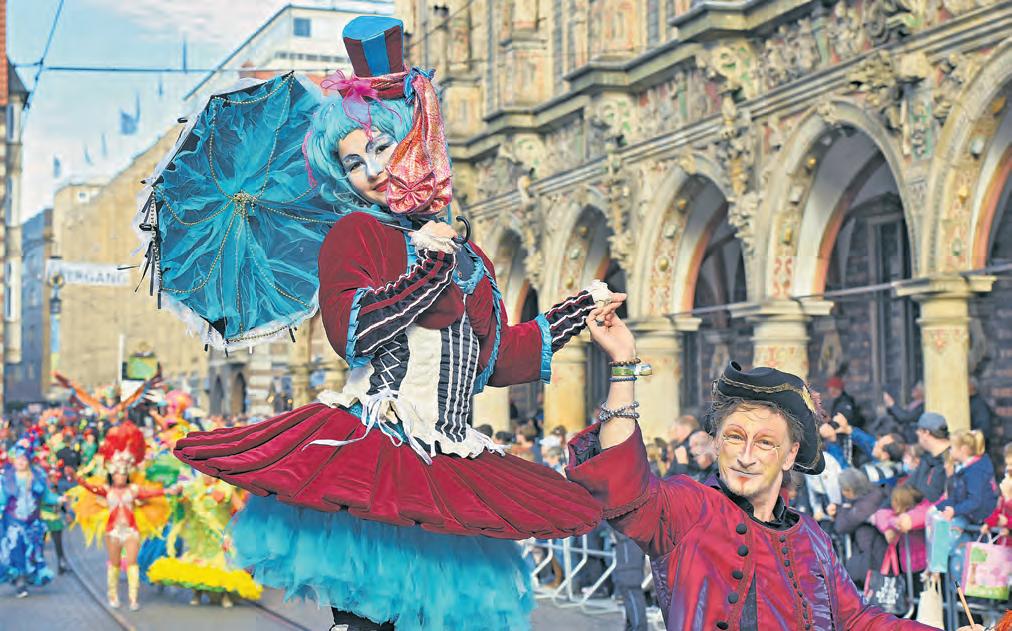 Endlich wieder Freimarktumzug, nach zwei Jahren coronabedingter Pause: 106 Vereine, Gruppen, Spielmannzüge und Wagen mit insgesamt rund 3.000 Teilnehmern zogen am Samstag durch die Innenstadt, an der Spitze Stelzenläuferinnen und Samba-Tänzer. Mehr als 200.000 Zuschauer säumten die rund 3,4 Kilometer lange Strecke und feierten mit. Und danach strömten viele zum Freimarkt. Bis 30. Oktober ist er noch auf der Bürgerweide.