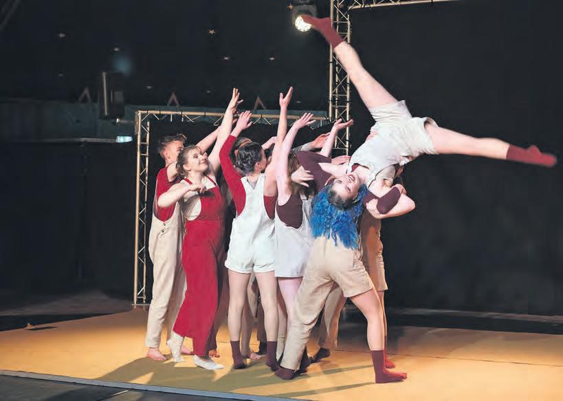 sächsische und Bremer Jugendzirkus Circ’o Holix bei La Strada auf. Die talentiertesten Nachwuchsakrobaten aus der Hansestadt und Niedersachsen zeigen als vielköpfiges Ensemble ihre Fähigkeiten auf der Bühne und in der Luft.