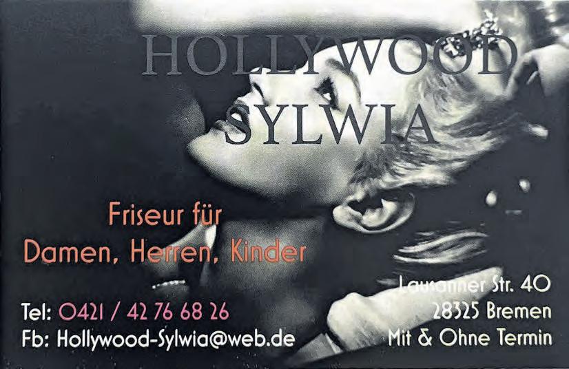 Goodbye ZugluftIntelligentsanieren Mehr Wärme,weniger Heizkosten, Energie+CO2! NeueDichtungen fürFensteru. Türen vomProfi 3794166-0 Beratung| Ve rkauf|Einbau Bremen, Neide ,www.dollex.de OST Sessel ab € 150,Sitzfläche ab € 20,Preisbeispiele: 2er Sofa ab € 200,Termine nach Vereinbarung! Rudolf-Diesel-Str. 18 Tor 1 • 28876 Oyten polster-service-oyten@web.de • www.polster-service-oyten.de Telefon 04207 / 695558 Telefon Werkstatt 04207 / 80 49 207 Alle Preise zzgl. Stoff und MwSt. 25 JA HRE • SE H EN • HÖ RE N • LE B EN Bremen, Einkaufscenter Berliner Freiheit 11 042 1/46 25 14 • optik-hallmann.de aufMarkenBrillengläser* – 50% aufGläser + Fassung** – 50% Ab 2 Brillen: Aktionengültigbis30.6.2023.*GültigbeimKaufvonMeisterglas ® Brillengläsern.Sieerhalten1BrillenglasderMarkeMeisterglas ® kostenlosbeimKaufeinesGlaspaares.Sospare nSie50%aufdenUVPdesHerstellers.**GültigbeimKaufvonzweiBrilleninderselben SehstärkemitMeisterglas ® Brillengläsern,ausg.derMarkenChanel,Dior,Gucci,Ørgreen, Lunor,LaRoche,Davidoff.NurfürNeuaufträge.KannnichtmitanderenAktionen,Kom- plettbrillenangebotenundGutscheinenkombiniertwerden.KeineBarauszahlungmöglich. OptikHallmannGmbHGroßeStr.27,24937Flensburg Nurnoch bis30.Juni!
