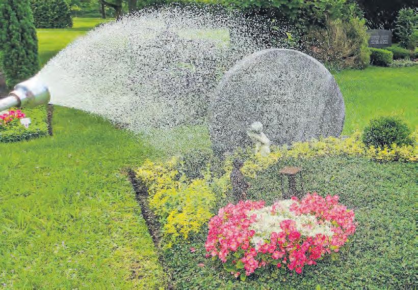 Damit die Pflanzen der Gräber ihre ökologische und gestalterische Funktion erfüllen, ist ein kontinuierlicher Gießvorgang unabdingbar. Foto: Gesellschaft deutscher Friedhofsgärtner