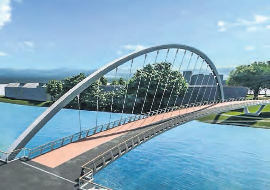 100 Meter lang, 8 Meter breit und komplett aus Stahl – so soll die Brücke über die Kleine Weser zwischen Piepe und Stadtwerder aussehen. Als Teil der Radroute Wallring soll der „Wesersprung Mitte“ vornehmlich die Wilhelm-KaisenBrücke entlasten und die Stadtteile miteinander verbinden.