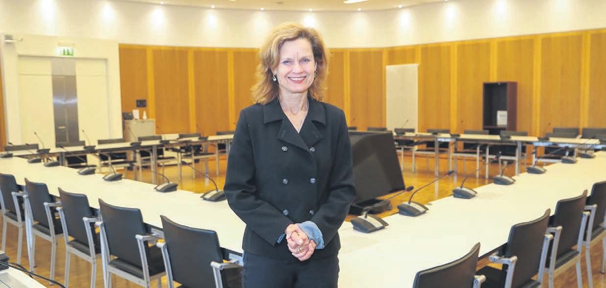 Warnt vor politischen und wirtschaftlichen Folgen, wenn mehr Rechtspopulisten ins Europaparlament kommen: Helga Trüpel, die Gastgeberin von der überparteilichen Europa-Union Bremen, zeigt den Saal, in dem jeder am 7. März mitreden darf. „Einmischen“, nennt sie das. Foto: Marcus Schmidt