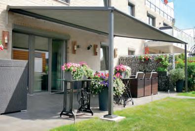 Heute gibt es vie le unterschied liche Va ri anten, aus gestat tet mit Falt dach, Son nense gel oder Glas dach. Bei der La mel len-Per gola las sen sich