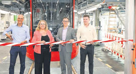 Im August folgten nun die Werkstatthalle, die Büro- und Sozialräume und die Abstellanlage für Straßenbahnen. Gefeiert wurde die Inbetriebnahme mit der Senatorin für Bau, Mobilität und Stadtentwicklung, Özlem Ünsal, Claudia Wiest und Thorsten Harder vom Vorstand der BSAG, Mitarbeitenden und Gästen aus dem Stadtteil.