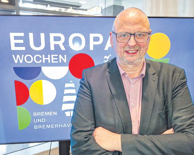 Die Europawochen dauern bis Ende Mai: Olaf Joachim ist Bevollmächtigter Bremens für Europa. Sein Tipp: „Es gibt am 13. Mai, 18 Uhr, eine Veranstaltung auf der Beletage, Hutfilterstraße 24: Dein Europa. Deine Demokratie. Dein Einsatz! Daran nehmen Gäste teil, „die ihre Wurzeln in Ländern haben, die den Traum von Europa gerne mitträumen.“ europapunkt.de