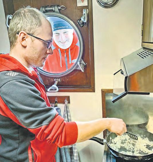noch einzelne Nachrücker unterbringen. Das Telefon bimmelt nonstop“, berichtet Erika. Sie setzt sich neben die Ausgabe auf einen der Gartenstühle. „Es ist gar nicht so sehr die körperliche Anstrengung, sondern die psychische. Ich muss alles im Blick behalten. Von allen Seiten rufen sie Erika, guck mal Erika, mach mal Erika.“ Im Hintergrund klappert ihr Team mit den Kisten. Sie zieht an ihrer Zigarette. Die Kunden greifen an der Ausgabe in die fast leeren Kisten. Ein Helfer wischt den Boden. „Für mich persönlich ist es so, dass ich immer mit einem sehr guten Gefühl nach Hause gehe, auch wenn ich mega geschafft bin. Ich habe nicht so viel zum Spenden, aber ich kann ein paar KarmaPunkte sammeln“, sagt sie und lacht. „Das macht da drinnen warm.“ Sie deutet auf ihr Herz. „Und ich liebe Menschen. Ich wäre sonst nicht 26 Jahre Altenpflegerin gewesen.“