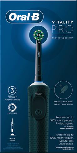 9 ZAHNPFLEGE HYGIENE 2.29 3.75 Prokudent Elektrische Zahnbürste Kids oder Motion je Stück -16% 9.99 11.99 Always Discreet Einlagen 8 – 30 Stück 3.33 Prokudent Mundspülung Anti Karies 500 ml 1 l = 1.78 0.89 Facelle Ultra-Binden 8 – 16 Stück Meridol Mundspülung Zahnfleischschutz 400 ml 1 l = 14.48 5.79 Colgate Zahncreme Komplett 8 75 ml 1 l = 15.87 Colgate Zahncreme Total 75 ml 1 l = 30.53 Sensodyne Pro Schmelz Zahncreme 75 ml 1 l = 50.Facelle Menstruationsunterwäsche Größe M – XL je Stück 11.99 Facelle Schwangerschaftstest Stick-Frühtest Stück 4.49 Tepe Interdentalbürste 8 Stück 4.95 Prokudent ZahnseideSticks 40 Stück 0.89 Dr. Best Zahnbürste Original 2 Stück + 1 Stück gratis 2.49 Dr. Best Zahnbürste Polimed Vibration Stück 5.79 Signal Kinder Zahnbürste Stück oder Kinder Zahncreme 50 ml oder Junior Zahncreme 75 ml 1 l = 33.80/22.53 1.69 Meridol Zahncreme oder Elmex Sensitive Zahncreme Doppelpack je 2 × 75 ml 1 l = 53.27 7.99 www.blauer-engel.de www.blauer-engel.de Oral-B Elektrische Zahnbürste Pro Series 3 Stück 54.99 -13% 1.99 2.29 Facelle Diskret Hygiene-Einlagen Maxi oder Extra Plus 8/10 Stück 5 € sparen2) 2.55 Always Slipeinlagen 40 – 56 Stück 0.89 1.19 Oral-B Pro-Science Advanced Zahncreme Stärkung & Regeneration 75 ml 1 l = 50.53 3.79 Oral-B Elektrische Zahnbürste Vitality Pro oder Pro Kids je Stück 5 € Rabatt beim Kauf einer Oral-B Vitality Pro oder Pro Kids2) 2) Gültig 04.03. – 08.03.2024 1 x Oral-B Elektrische Zahnbürste Vitality Pro oder Pro Kids kaufen – 5 € Rabatt erhalten. Keine Barauszahlung möglich. Nur 1 Coupon pro Kauf einlösbar. Bitte selbst auswählen. 22.99