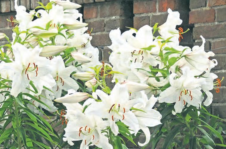 Stehen Lilien in voller Blüte, haben ihre Köpfe einiges an Gewicht und können leicht umknicken –daher ist es ratsam, sie windgeschützt zu pflanzen, etwa vor eine Mauer.