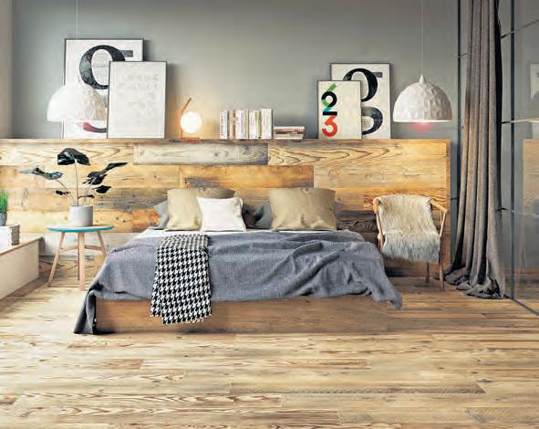 erste Wahl, denn sie dünsten keine flüchtigen Stoffe aus und die Materialien zum Verkleben und Verfugen sind lösungsmittelfrei. Außerdem sind sie der ideale Partner für eine Fußbodenheizung und lassen sich spielend leicht reinigen. Wer trotzdem meint, Fliesen sind für den Schlafraum zu ungemütlich, sollte sich auch einmal im Fachhandelumsehen. Unter dem Dachnamen Tile of Spain etwa zeigen die Firmen von der Iberischen Halbinsel hochwertige keramische Fliesenkollektionen. Neben Beton- und Natursteinoptiken sind Fliesen im Holz-Look topaktuell. Diese stehen echten Holzdielen in Form und Farben in nichts nach, sind aber eine allergiefreundliche Lösung. So bringen sie beispielsweise die Wärme eines echten Parkettbodens ins Schlafzimmer und das völlig pflegeleicht und wohngesund. Dank neuester technischer Möglichkeiten sind in puncto Design der Vorstellung keine Grenzen gesetzt.