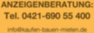 Anzeigenannahme: 0421 - 690 55 400 oder per E-Mail: info@kaufen-bauenmieten.de