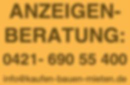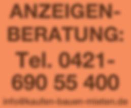Anzeigenannahme: 0421 - 690 55 400 oder per E-Mail: info@kaufen-bauenmieten.de