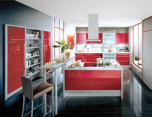 sodass kurze Wege wichtig sind. Auch ein Ess- und Arbeitsplatz ist oft gefragt und lässt sich selbst in kleinen Küchen realisieren. Für die Unterbringung von Töpfen, Tellern, Gläsern und Vorräten sind Schrän-