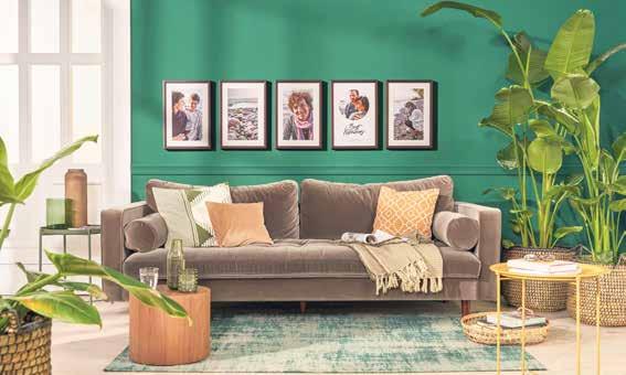 Ein harmonischer Look entsteht, wenn die Präsentation der Wandbilder auf den gesamten Einrichtungsstil abgestimmt wird. Zurück zur Natur, so lautet das Motto bei „Greenterior“. Für diesen Trend werden viele Pflanzen, satte Grün-