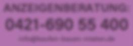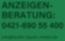 Ihre Anzeigen können Sie bequem per E-Mail: info@kaufen-bauen-mieten.de, telefonisch unter 0421- 690 55 400