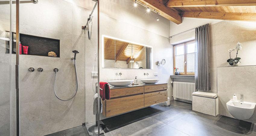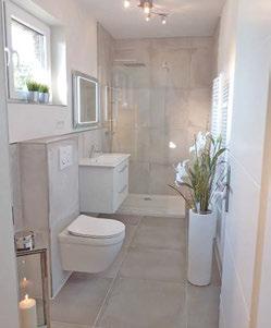 getauscht werden. Großflächige Dekorplatten über vorhandene Fliesen eröffnen spannende Möglichkeiten, um Teilbereiche des Bads wie die Duschwand oder den Waschtischhintergrund neu zu gestalten. Für den Ersatz der Wanne gibt es Duschlösungen, die sich schnell und einfach einbauen lassen. Unter www. meister-der-elemente.de gibt es mehr Inspirationen sowie Adressen von Sanitärprofis, die eine Teilsanierung planen und budgetgerecht umsetzen können.
