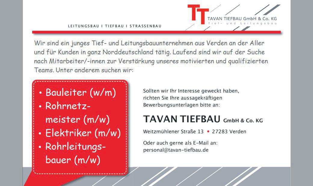 Oder auch gerne als E-Mail an: personal@tavan–tiefbau.de