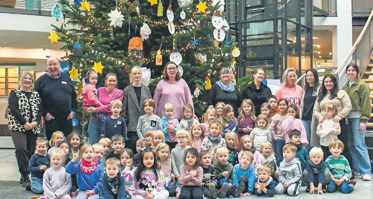 Alljährlich dekoriert und schmückt eine andere der städtischen Kitas die große Weihnachtstanne im Foyer des Achimer Rathauses. In diesem Jahr übernahmen die rund 60 jungen Achimerinnen und Achimer aus der Kindertagesstätte Uesener Weltentdecker diese Aufgabe nur allzu gerne. Zuvor hatten in der Einrichtung natürlich monatelange Basteleien, die bereits nach den Sommerferien begonnen hatten, auf dem Programm gestanden. Auch für Bürgermeister Rainer Ditzfeld ist die alljährliche Schmückungsaktion ein wichtiger Termin: Schließlich seien die von den Jüngsten aus den Kitas angestimmten Weihnachtslieder für ihn so etwas wie der Startschuss zum Fest, erklärte er. Foto: Stadt Achim