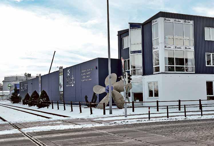 Blaue Hallen mit allem für Schiffe in aller Welt: Hinter den Gleisen an der Bremerhavener Straße und an der nahen Weser liegt die berufliche Heimat der geschäftsführenden Gesellschafterin der Kloska Group.