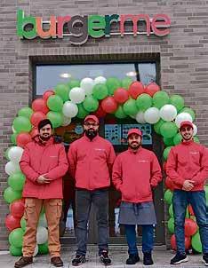Human Sadrnafisy (2.v.l.) mit seinem Team vor dem neueröffneten burgerme-Store in Horn-Lehe. Foto: burgerme