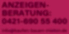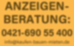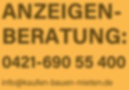 Anzeigenannahme: 0421 - 690 55 400 oder per E-Mail: info@kaufen-bauenmieten.de