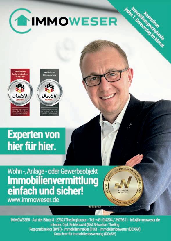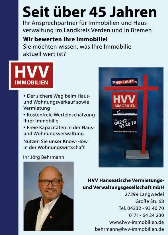 Werteleben–dasistunssehrwichtig: DasbedeutetfürSie,dasswirunsan einenverbindlichenMoralkodexund anerkannteQualitätsstandardsbei derBeratungundBetreuungunserer Kundenhalten. Damitsindwirvielmehrals»nur« einImmobilienbüro–wirsindein tradiertesFamilienunternehmen–IhrImmobilienspezialistfürdie GesamtregionBremen-Verdenund mitmehrals5.000zufriedenen Kundenseit1958erfolgreichtätig.