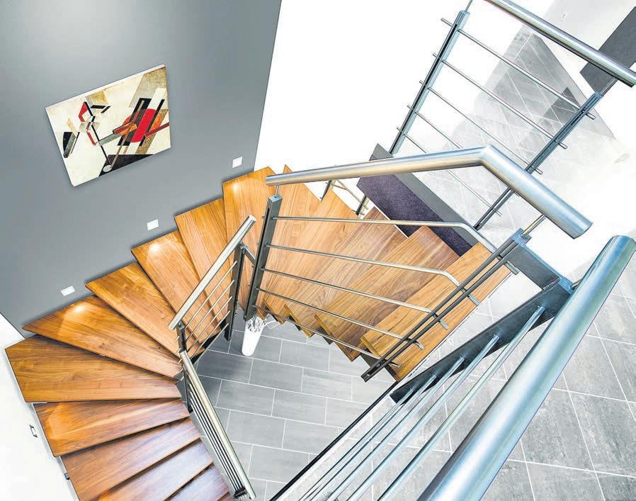 Handlauf, Füllung und Pfosten gestalten das Gesamtbild maßgeblich mit und geben der Treppe einen individuellen Charakter – abgestimmt auf den Stil des Hauses. Die Auswahl der Treppenspezialisten dafür ist vielfältig. Holzstäbe und -pfosten mit handwerklichen Details betonen den rustikalen Charme des Landhausstils. Puristische Edelstahlkonstruktionen stehen für kühle Eleganz. Und Geländer im Mix aus Holz und Stahl treten zeitlos modern auf. Möglich sind auch Füllungen aus Glas. Mit dem großen Kombinationsspielraum findet jeder das zu seiner Treppe passende Geländer – exakt geplant und fachgerecht montiert von den Treppen-Spezialisten. So wird das Sicherungselement zum repräsentativen Blickfang und die Treppe zum architektonischen Mittelpunkt.