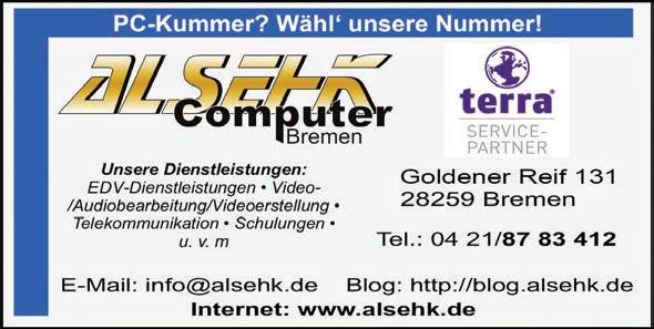 Anzeigenberatung: Stephanie Pingel, Tel. (0421) 690 55 - 165 Simon Owusu, Tel. (0421) 690 55 - 142