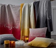 Textilserie, 85% Baumwolle, 8% Viskose, 7% Polyacryl, waschbar bei 30°, in verschiedenen Farben erhältlich. Kuscheldecke, B/L ca. 150x200 cm je 49.Deko-Kissen, 100% Polyester, L/B ca. 50x50 cm optional erhältlich.