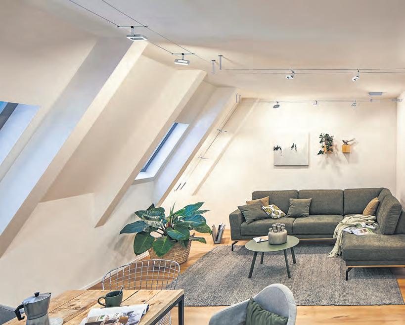 Für ein stimmiges Lichtkonzept stehen eine Vielzahl von Leuchten zur Auswahl. Wie in allen anderen Etagen gilt auch für das Dachgeschoss: Der Mix aus direktem und indirektem Licht macht sie erst so richtig gemütlich.